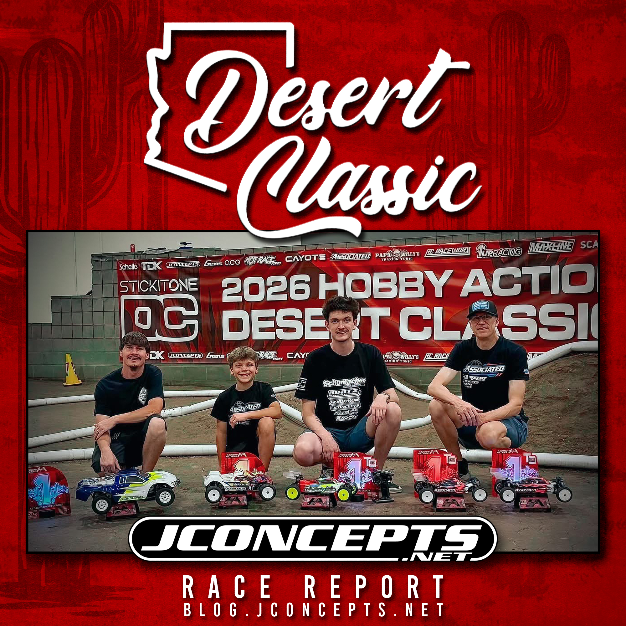 Just over a week ago the JConcepts team headed to the World Renowned Hobby Action Raceway for the the 2026 Desert Classic. American and International racers gathered to battle it out at one of the marquee 1/10th scale dirt events of the year with 325 total entries registering by the time racing started.