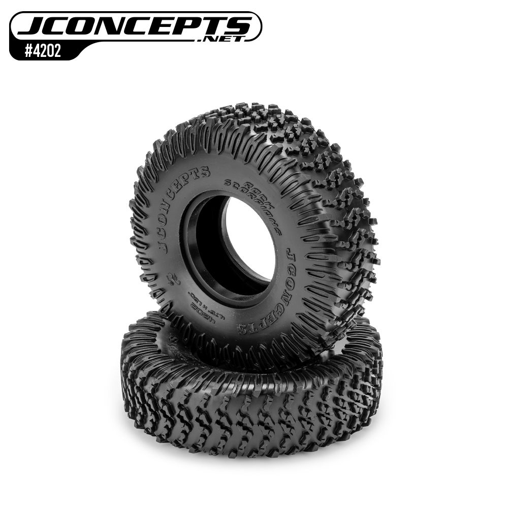 The large overall height provides plenty of ground clearance for an abundance of terrain and sidewall tire lettering featuring brand, type, and sizing help identify a winner. The tires include a soft open-cell foam insert capable of standing up to the super soft compound but flexible enough for sharp terrain. Prepare your rig for competition with Rock Scorpions from JConcepts.